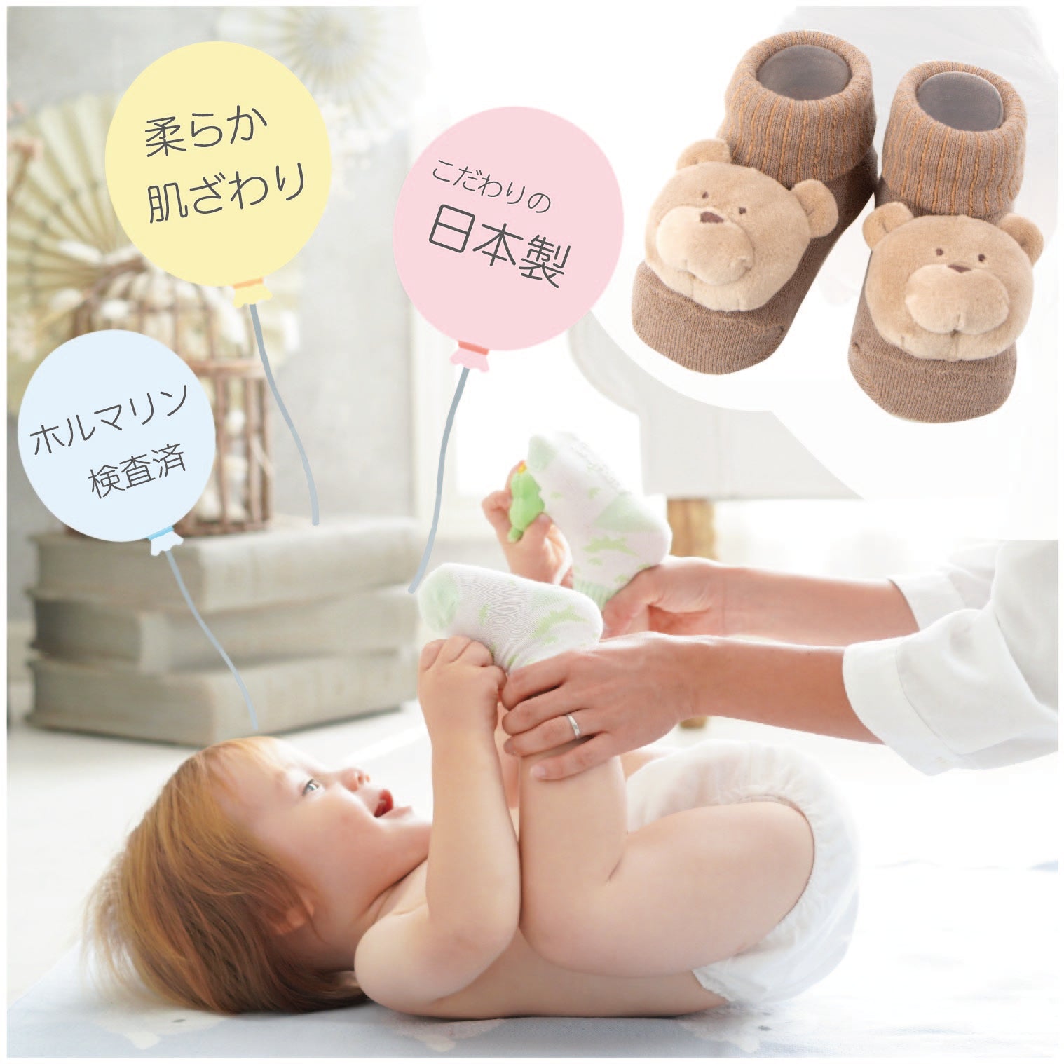 まだ歩けない赤ちゃんは、靴を履けないor履かないことが多いので代わりに靴下をはかせる機会がたくさん!出産祝いの定番アイテムです。